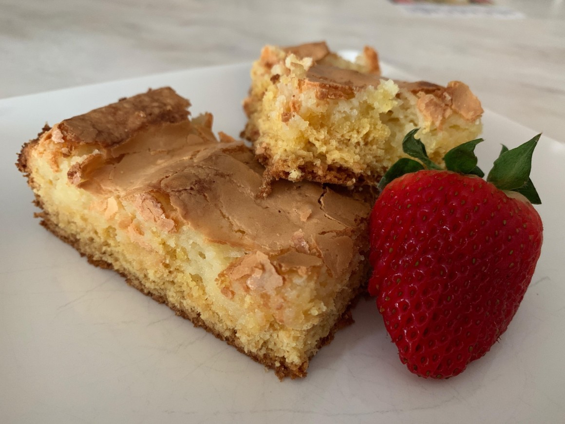 Not long ago, our cafeteria at work had Ooey Gooey Butter Cake out during lunch hour as part of their grab and go spread. They looked good, so I grabbed a small piece to enjoy after my salad. One bite of this little slice of heaven and I was in love, savoring the sweetness with a touch of something I just couldn’t place.